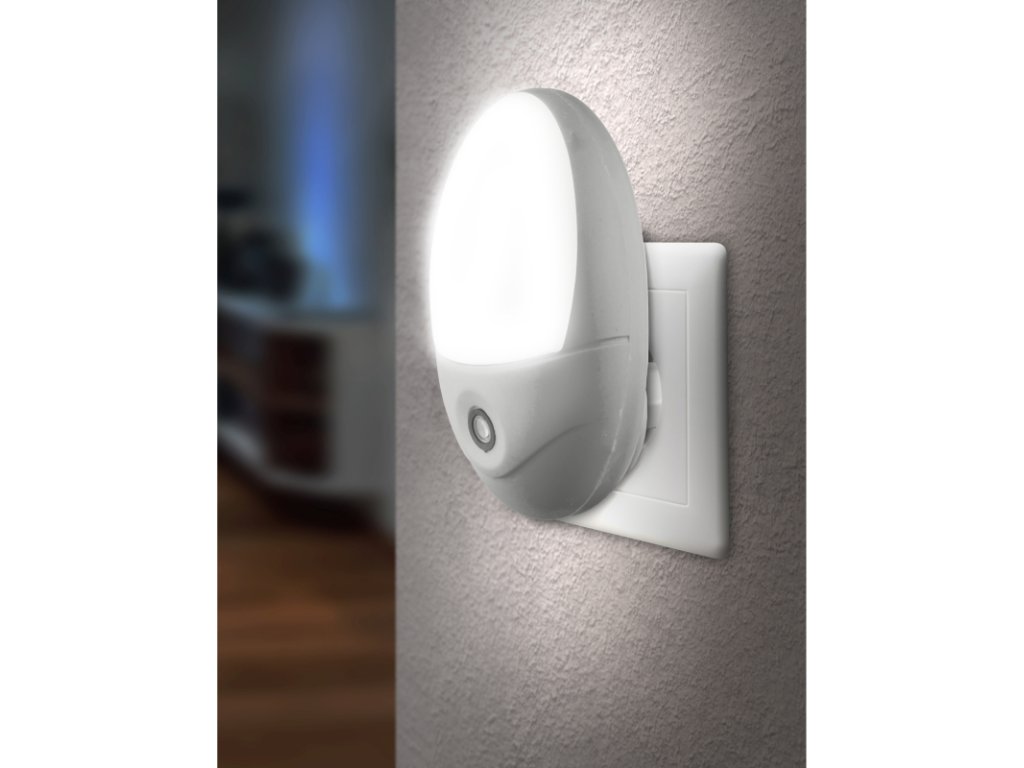 Svítidlo do zásuvky, plast bílý, soumrakový vypínač, ŠxV: 65x100, H: 75, včetně 4xLED 0,6W 230V, 18lm, 6500K.
