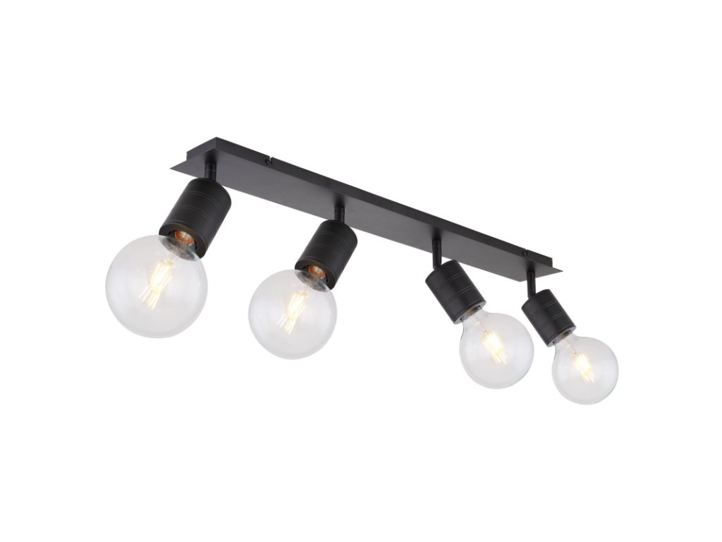 Stropní svítidlo, kov černý, hliník černý, bez stínítka, stropní rýhovaná základna, DxŠxV: 800x100x160, bez žárovek 4xE27, max. 60W 230V
