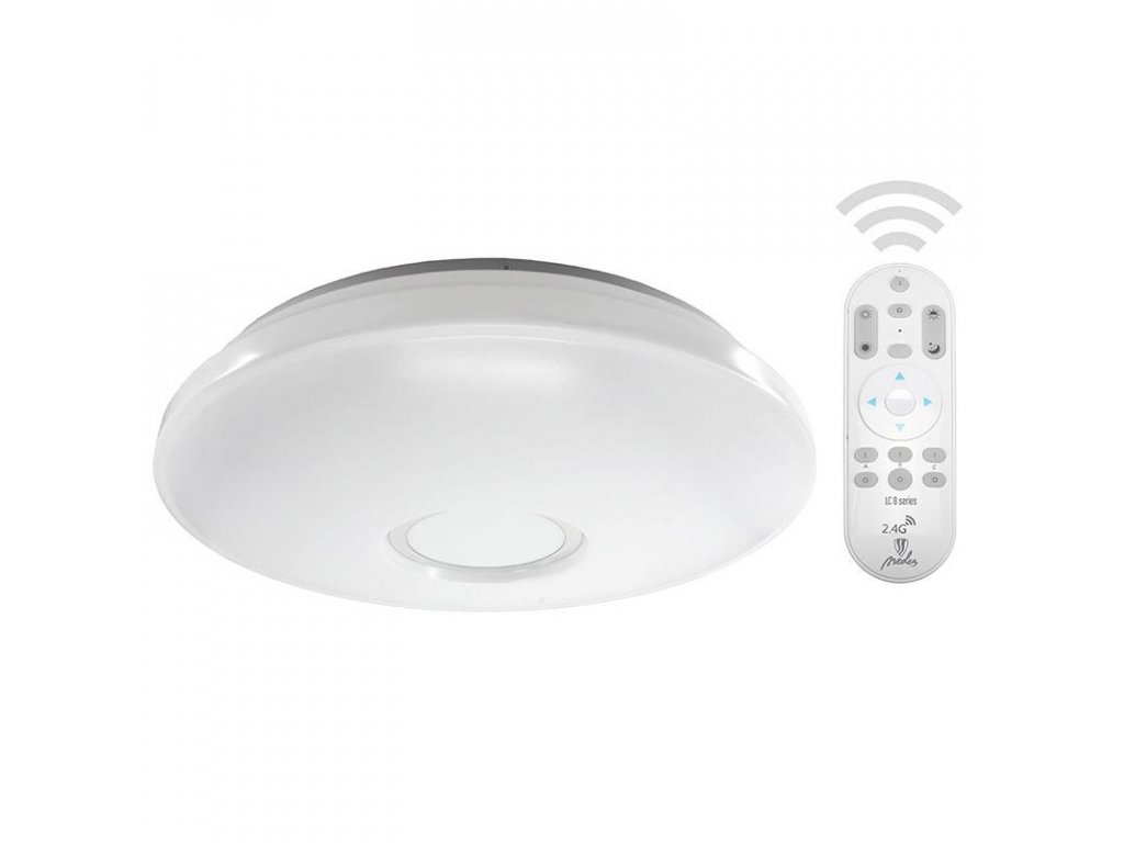 NEDES LC802U LED stropní svítidlo na dálkové ovládání - součástí svítidla je led zdroj 60W, 2700-6500K, 4300lm, IP20. Zapínání je možné pomocí klasického vypínače (pamatuje si poslední nastavení) resp. pomocí dálkového ovládání (možnost měnit: barvu světla, intenzitu, noční režim - 3 barvy, časovač). Je možné párovat víc svítidel na jeden dálkový ovladač. Díky fosforovým tlačítkům je ovladač vidět ve tmě.